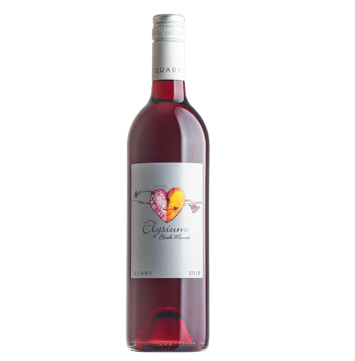 In 1983, a nearby grower brought Andrew Quady some Black Muscat grapes that were previously destined for sacramental wine at a local church. When the church ceased operations, the grower was left with truckloads of ripe, unwanted Black Muscat. The grower heard through the grapevine that newcomer Quady had some success with Orange Muscat, so he knocked on Quady’s door, and the rest is history. Quady handled the Black Muscat in the same manner as Essensia: crushing, chilling and allowing the grapes to macerate. He added wine spirits to arrest the fermentation. On draining the tank the winery began to smell of roses! In his amazement he held a naming contest and selected Elysium, “state of eternal bliss” in Greek, as a name for this exciting muscat wine. Elysium’s violet-crimson color and litchi-rose aroma develop after the fruit attains full maturity. This requires a warm climate. In warmer years the color is darker and the aroma is more intense. Elysium is wonderful with cheeses, especially goat cheese or Gorgonzola; with desserts containing red fruits, such as English Summer Pudding; with dark chocolate and with cream desserts and cheesecake. Elysium poured onto vanilla ice cream is an effortless favorite. Elysium makes stunning spritzers and cocktails. Try the Elysium spritzer in the summertime as a light patio pleaser. Or mix it up with whiskey, lemon, and sweetener for an Elysium Sour. Add it to sparkling wine in place of creme de cassis to make a black muscat rendition of the popular French ‘kir royale.’ To peruse Elysium cocktail recipes, head over to our recipes page. The heart on the Elysium label is drawn by artist Ardison Phillips. The label design is by Laurel Quady. Fortified to Approximately 15% Alcohol by Volume.